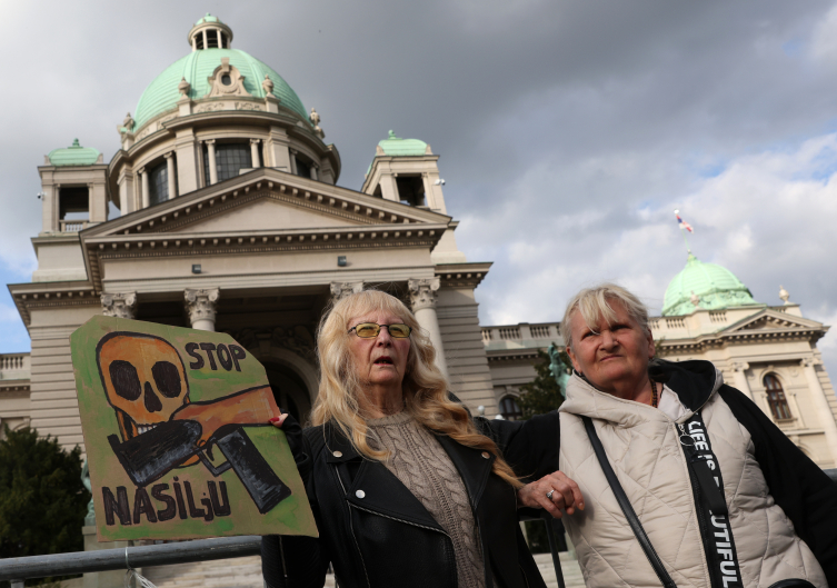 Başkentteki meclis binası önünde toplanan yaklaşık 50 bin kişi, İçişleri Bakanı Bratislav Gasic ve Sırbistan Güvenlik Bilgi Ajansı (BIA) Müdürü Aleksandar Vulin'in "istifasını" isterken, ülkede yayımlanan ve şiddetin her boyutunun yer aldığı "reality" programlarının kaldırılması çağrısında bulundu.