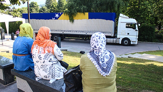 Srebrenitsa'daki soykırımda hayatını kaybeden kurbanlardan kimlik tespiti yapılan 127 kişinin cenazelerini taşıyan tır, Visoko'dan hareket etti.