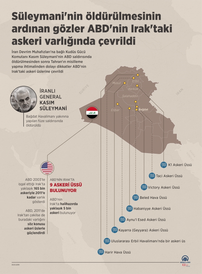 ABD, 2011'de Irak'tan çekilse de buradaki varlığını söz konusu askeri üslerle güçlendirdi. ABD'nin Irak'ta halihazırda yaklaşık 5 bin askeri bulunuyor.