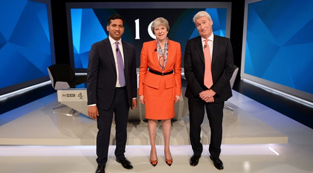 Sky News ile Channel 4 kanallarının ortak canlı yayınına önce İşçi Parti lideri Jeremy Corbyn, daha sonra ise Muhafazakar Partinin lideri ve Başbakan Theresa May çıktı.