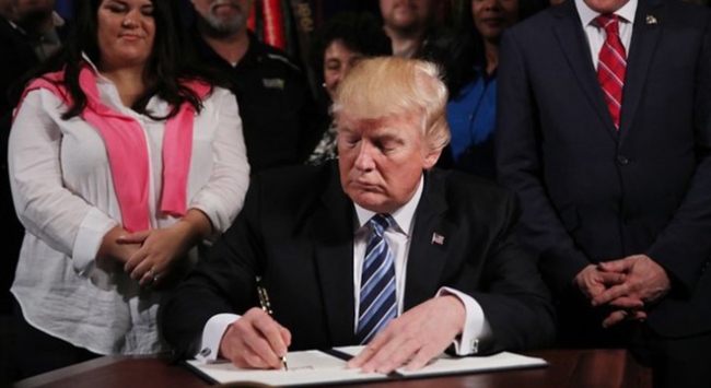 Trump, Beyaz Saray’da imzaladığı kararnameyle, ABD İçişleri ve Ticaret bakanlıklarına petrol ve doğalgaz faaliyetlerinin yasak olduğu bölgelerin yeniden faaliyete açılmasını değerlendirme direktifini verdi.