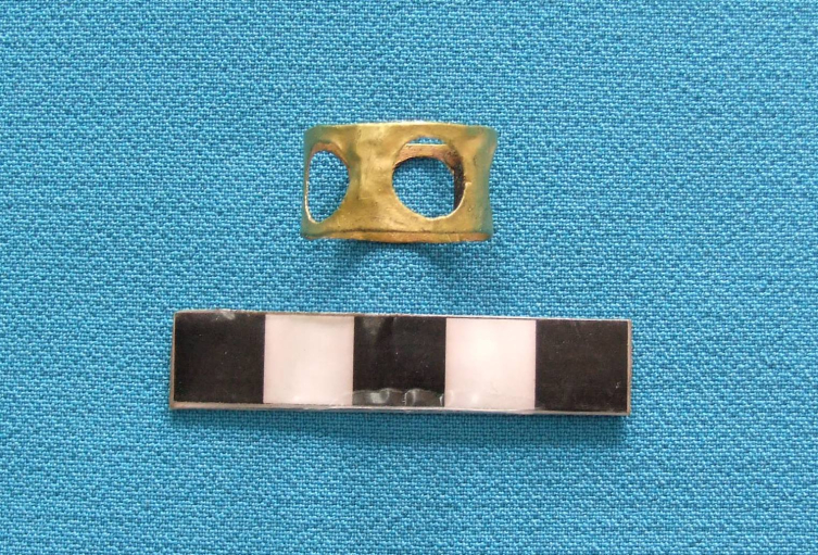 Mezar odasının üst kısmında, hükümdarın şahsi eşyalarının bırakıldığı özel niş alanında ise tunçtan imal edilmiş halkalı bir ok ucu, bir altın yüzük ve üzerinde arkaik dönem yazı üslubuna benzediği düşünülen gizemli bir çömlek parçası tespit edildi.
