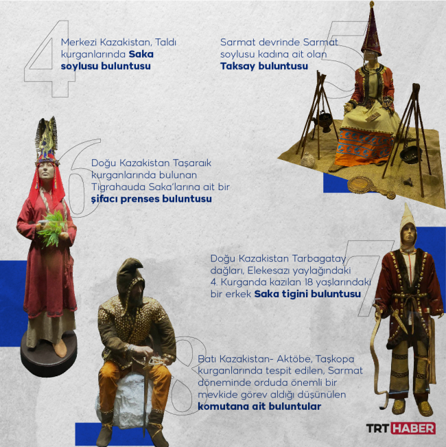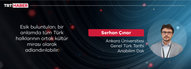 [Fotoğraf: Serhan Çınar | Kolaj: TRT Haber]1970 yılında Esik kurganından çıkarılan farklı formlardaki sayısız işlemeli eserlerin tespiti, Sovyet arkeolojisinde Türkistan’ın antik tarihinin aydınlatılmasında Harezm ve Fergana bölgesindeki yerleşik kültürlerin yanında Mançurya ovasından Sibirya’ya kadar uzanan göçebe halkların da tarih ve arkeolojilerinin aydınlatılmasına yönelik yeni bir araştırma alanını ortaya çıkardı. Kısa süre içerisinde Tuva, Altaylar ve Kırım bölgelerinde İskit ve Saka’lara ait yeni kraliyet kurganları kazılarak incelendi. Bu birikim Avrasya arkeoloji alanında “İskitoloji” olarak adlandırılacak özel bir uzmanlaşma alanının doğmasını sağladı.