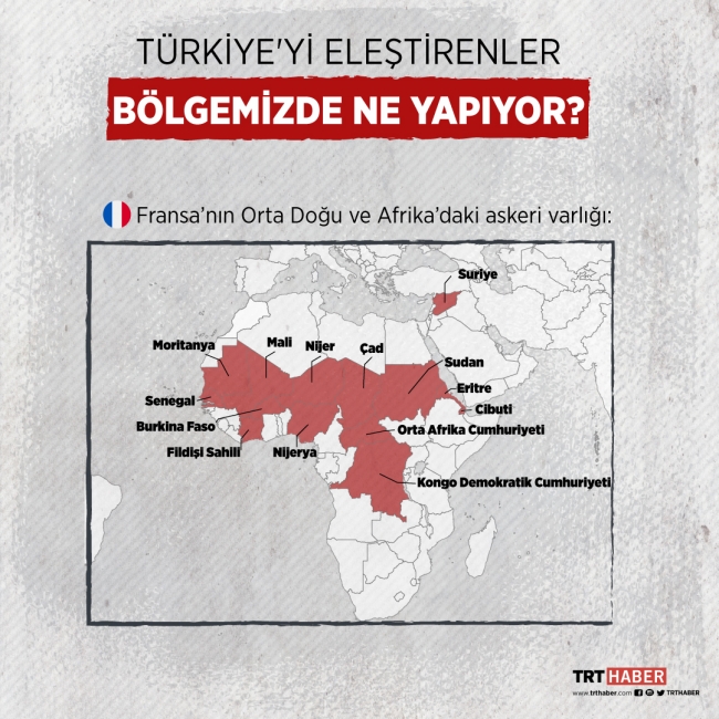 Fransa'nın sadece Sahel (Senegal, Moritanya, Mali, Burkina Faso, Nijer, Nijerya, Çad, Sudan, Eritre) bölgesinde 4 bin 500 ila 5 bin askeri olduğu biliniyor. Mali'nin kuzeyindeki terör faaliyetlerine karşı konuşlanan Fransız ordusunun bugünlerde Çad'ın başkenti Encemine, Burkina Faso'nun başkenti Vagadugu, Nijer'in başkenti Niamey, özellikle Mali'nin başkenti Bamako ile Gao kenti ve Moritanya'da askeri varlığı bulunuyor.