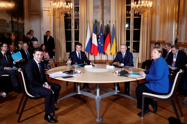 Barışa giden yolda atılan en önemli adımlardan biri Normandiya Formatı'nın yenilenmesiydi. Normandiya Formatı'ndaki liderler 3 yıl boyunca toplanmadı. Tabi Minsk süreci de var. Minsk önemli bir yer, sorunu çözmek için önemli bir format. Ama doğrusu 3 yıl boyunca hiçbir diyalog olmadı; 4 lider bu savaş hakkında konuşma fırsatı bulamadı. Normandiya buluşmasının sonuçları oldu. İlk olarak tutukluların takası gibi önemli konularda konuştuk ve daha sonra 76 Ukraynalı'yı vatanına kavuşturduk. Düşünün, Ukrayna'da büyük bir tatil olan yeni yılda onları aileleriyle kavuşmuş gördüğüme ne kadar mutlu oldum. İkinci olarak saldırıların, bombalamaların durdurulması hakkında konuştuk. Hala bazı saldırılar oluyor. Ama eminim ki çalışacağız ve Donbass'taki bombardımanı durduracağız.