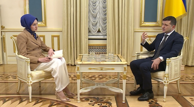 [Ukrayna Devlet Başkanı Vladimir Zelenskiy, TRT Haber'in sorularını yanıtladı.]"Serbest ticaret anlaşması imzalamamıza bir adım kaldı"