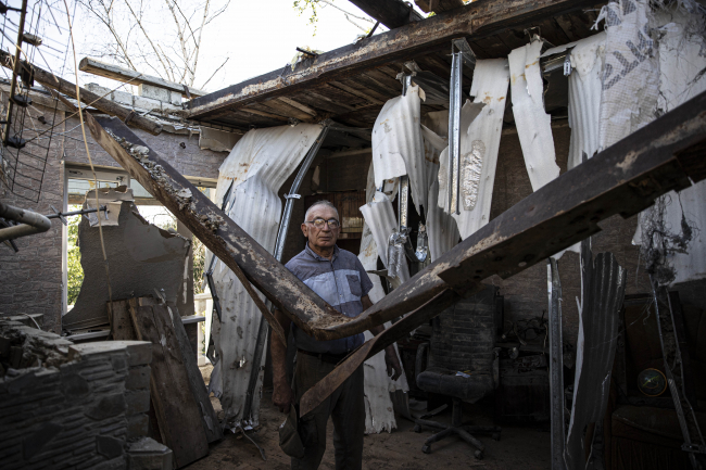 Cephe hattından gelen patlama seslerinin duyulduğu köydeki Harkiv sokağında bulunan ve çatışmalardan hasar gören evini tamir etmeye çalışan 71 yaşındaki Vasiliy Zabara, yaşadıklarını anlattı.