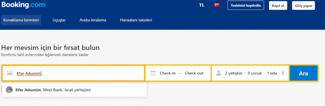 Uluslararası seyahat ve konaklama firmaları Airbnb ve booking.com, listelerinde yer alan Filistin topraklarına ait yerleşim birimlerini İsrail'de gibi gösteriyor.