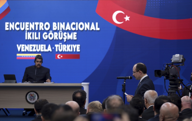 [Fotoğraf: AA]İki ülke arasındaki ticari hedeflere değinen Maduro, "Venezuela ve Türkiye ekonomik ilişkilerini gelecekte refah, zenginlik, karşılıklı fayda bekliyor. Şimdiye kadar böyle oldu, bundan sonra da böyle olacak, ileri doğru gidiyoruz." değerlendirmesinde bulundu.