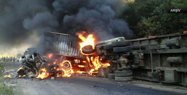 Çarpışmanın etkisiyle iki aracın da alev aldığı kazada 15 kişi yaşamını yitirdi.