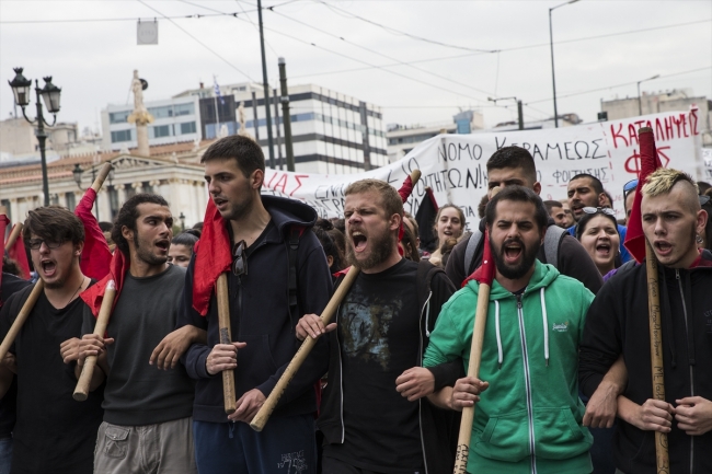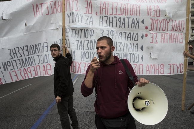 Öğrenciler, ''Üniversitelere dokunmayın'', ''Dokunulmazlık kazanılmış haktır, değiştirilemez'' şeklinde sloganlar atarak parlamento binasının da bulunduğu Sintagma Meydanı'na yürüdü.
