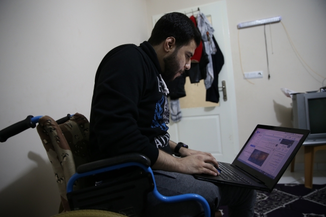 Yaklaşık 3 yıl önce Suriye'nin Lazkiye kırsalındaki Cebel Ekrad bölgesinde yaşarken Beşşar Esed rejiminin saldırısı sonucu bir ayağını kaybeden Suriyeli gazeteci-aktivist Omar Madaniah, hayatını Hatay'ın Reyhanlı ilçesinde sürdürüyor.