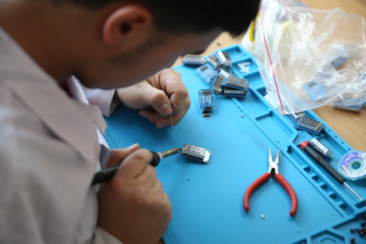 Öğrenciler, geçen yıl "KOD-AT" adıyla Türk Patent ve Marka Kurumunca tescil belgesi verilen eğitim setinin seri üretimini yapıyor.