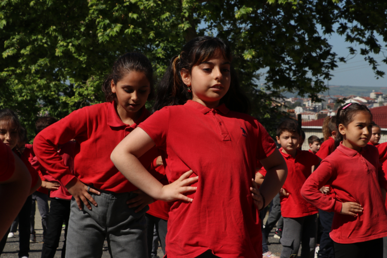Öğrenci Bahar Ertuğ ise öğretmenleriyle birlikte spor yaparken oldukça eğlendiklerini ve derslerinin çok keyifli geçtiğini kaydetti.