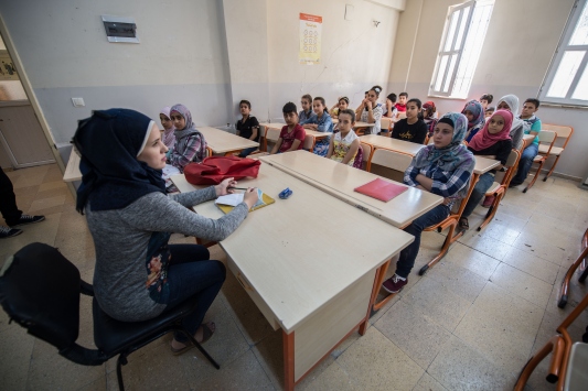 Milli Eğitim Bakanlığına bağlı okullarda sabah eğitim gören Suriyeli öğrenciler, öğleden sonraları ise kendi dil ve müfredatlarına göre 14 Eylül Ortaokulunda açılan 14 Eylül Geçici Eğitim Merkezine devam ediyor.
