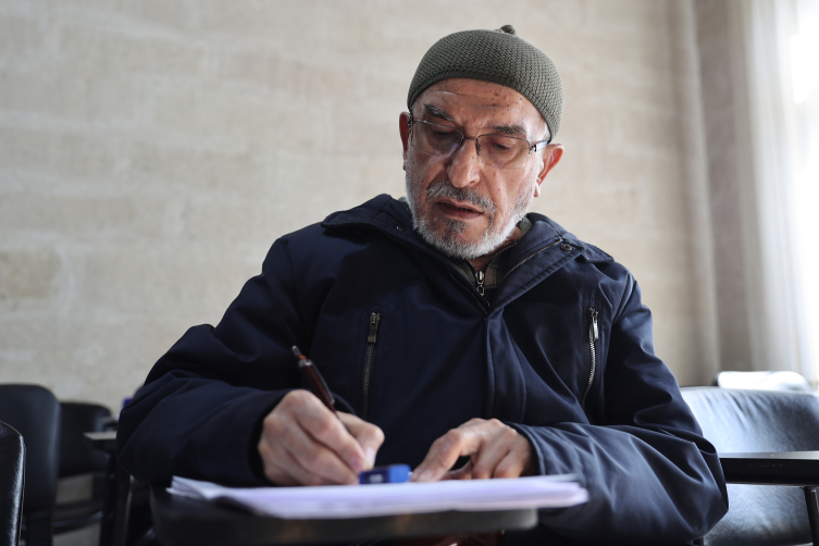 Nevşehir Belediyesi bünyesindeki Kapadokya Eğitim Merkezi'nde (KAPEM) Halk Eğitim Merkezi işbirliğinde açılan İngilizce kursuna kızının tavsiyesi üzerine üç hafta önce kayıt olan Yıldız, hafta sonları bastonla yürüyerek kursa geliyor.