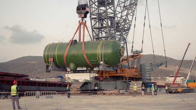 Açıklamada görüşlerine yer verilen Akkuyu Nükleer AŞ Genel Müdür Birinci Yardımcısı ve NGS Yapı İşleri Direktörü Sergei Butckikh, Akkuyu NGS için büyük boyutlu ekipmanların naklinin genel olarak kara ve deniz yollarıyla gerçekleştirildiğini belirtti.
