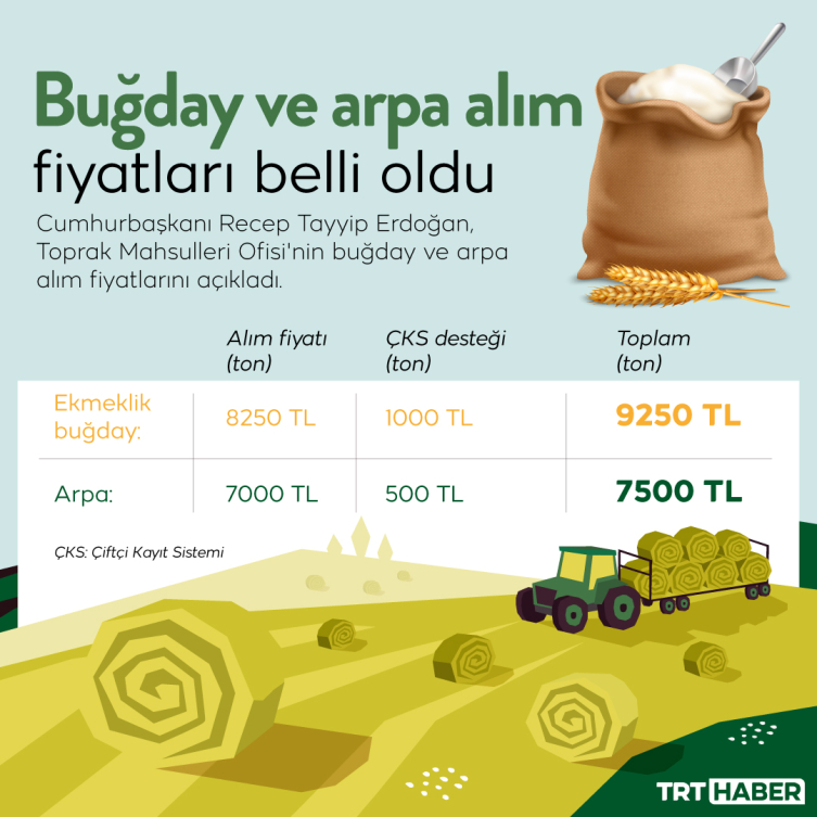 [TMO alım fiyatları] Cumhurbaşkanı Erdoğan: Üreticilerimizin eline ton başına ekmeklik buğdayda 9 bin 250 lira, arpada ise 7 bin 500 lira geçecektir.https://t.co/iAOLtOo0wA pic.twitter.com/7UrddMNqun