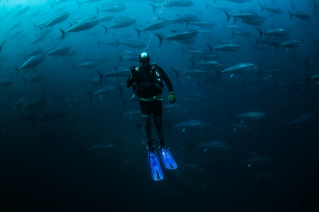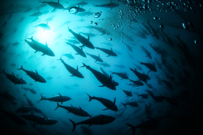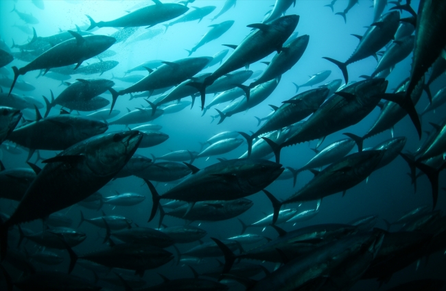 Sardalya, kolyoz ve uskumru ile beslenen orkinoslar aralık ayında Japonya'dan gelen fabrika gemilere veriliyor.