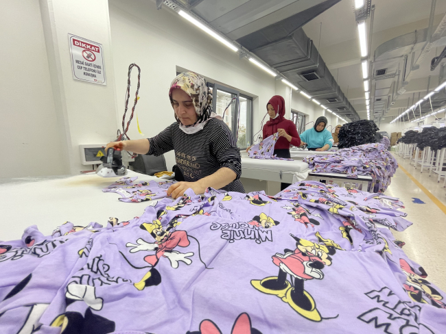 Bebek ve çocuk ürünleri örme grubu üzerine çalıştıklarını ve genelde tişört, sweatshirt, pijama gibi baskılı ürünler ürettiklerini belirten Karaağaç, aylık üretim kapasitelerinin 550-650 bin parça civarında olduğunu aktardı.