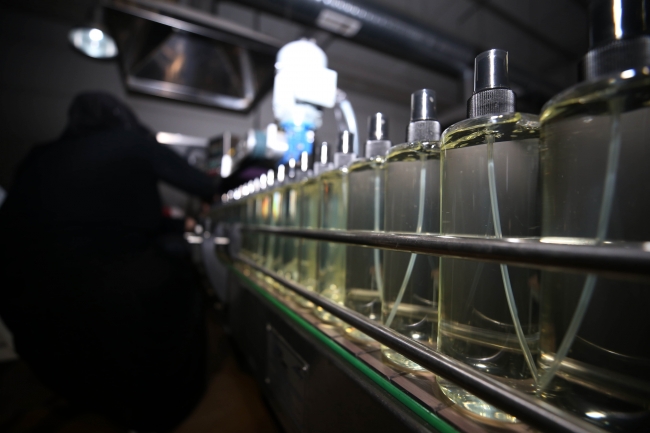 [Vatandaşlar tarafından kolonyanın koronavirüse karşı tedbir amaçlı kullanılmasıyla, üreticiler siparişleri yetiştirmekte güçlük çekmeye başladı - Fotoğraf: AA]4 aylık kozmetik alkolü 10 günde bitti