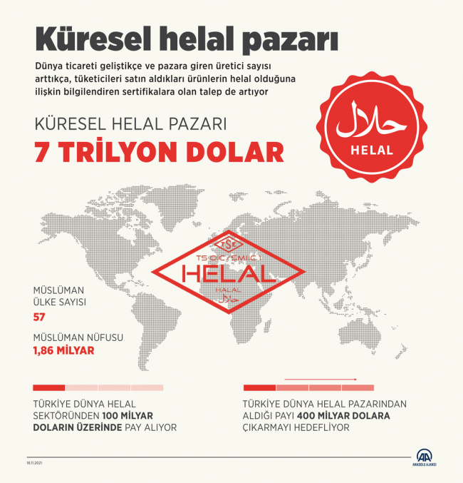 Türkiye bu anlamda öncü olmaya Türk Standartları Enstitüsü, Dünya Helal Birliği, Gimdes ve buna benzer ciddi kuruluşlarla sahada olmaya gayret ediyor. Belgelendirme kuruluşlarını denetleyip akredite eden, kanunla kurulmuş Helal Akreditasyon Kurumu'na (HAK) da sahibiz. Gün geçtikçe bu kuruluşun da dünyaca tanınıp hüsnükabul göreceğini biliyoruz."