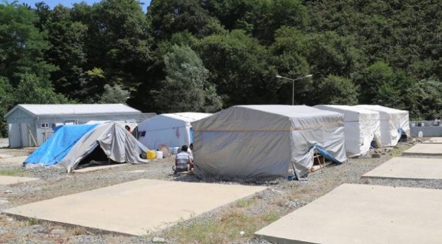 İşçiler, Ordu Valiliğince Altınordu, Fatsa, Perşembe ve Ünye ilçelerinde hazırlanan konaklama alanlarında çadırlarını kuruyor.