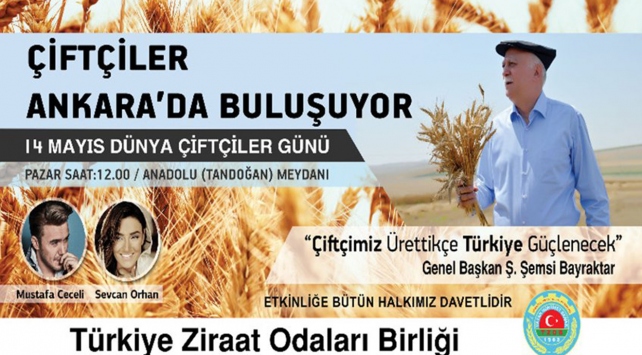 TZOB tarafından Ankara Anadolu (Tandoğan) Meydanı'nda düzenlenecek etkinlikte, 81 ilden gelecek on binlerce çiftçi sorunlarını dile getirecek. Geniş bir kampanyayla duyurulan etkinlikte ses sanatçıları Mustafa Ceceli ile Sevcan Orhan konser verecek.