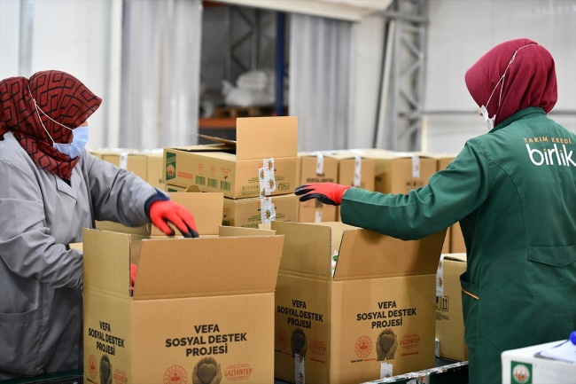 Özellikle son iki aydır Tarım Kredi iştiraki Tarım Kredi Birlik AŞ'nin Etimesgut tesislerindeki çalışanlarca 24 saat gıda kolilerinin hazırlandığı bilgisini veren Poyraz, "Gıda kolileri hem kurumsal anlamda 10 yıllık paydaşımız Vakıflar Genel Müdürlüğüne bağlı bölge müdürlüklerine hem de bölge birliklerimiz ve şirketimiz Tarım Kredi Birlik AŞ'nin ortaklaşa çalışmalarıyla memleketimizin dört bir yanındaki belediyeler, valilikler, sosyal yardımlaşma vakıfları gibi yaklaşık 300 kuruma yoğun bir şekilde sevk edilmektedir." değerlendirmesinde bulundu.