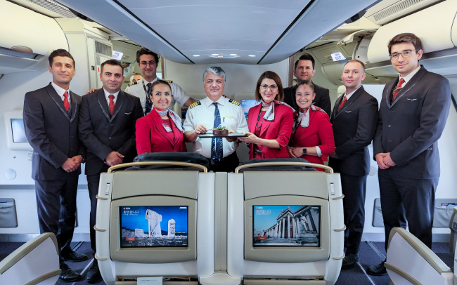 THY Basın Müşavirliği'nden yapılan açıklamaya göre, deneyimli pilot Ceyhan Yılmazcan, bulutların üzerindeki son görevi olan TK1661 ve TK1662 sefer sayılı İstanbul-Hamburg-İstanbul uçuşlarında hüzünlü anlar yaşarken Hamburg Havalimanı'nda kendisi için veda pastası kesildi.