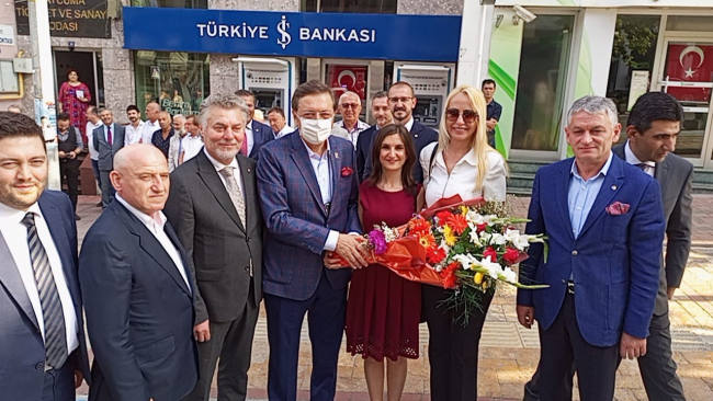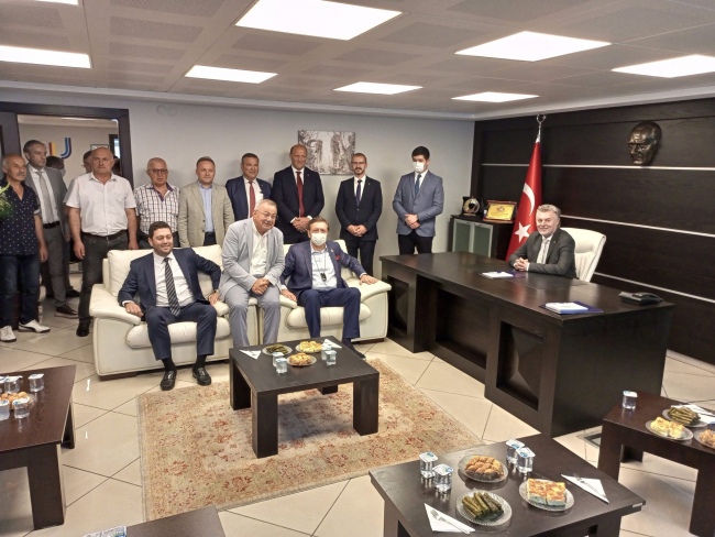 Çaycuma TSO Başkanı Zekai Kamitoğlu, yönetim kurulu ve meclis üyeleri tarafından karşılanan Hisarcıklıoğlu TSO binasının önünde karşılanarak çiçek sunuldu.
