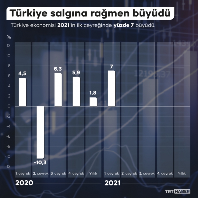 Türkiye ekonomisi, salgınla geçen 2020'nin başından bu yana 2. çeyrekteki düşüş hariç yükselişini sürdürmüş oldu.