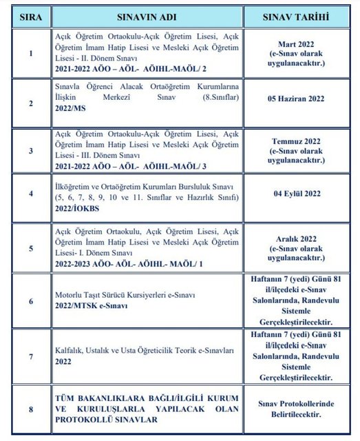 Açık Öğretim Lisesinin 2021-2022 eğitim öğretim yılı II. Dönem sınavı Sınav Uygulama Takvimine göre online (çevrim içi) olarak yapılacaktır.