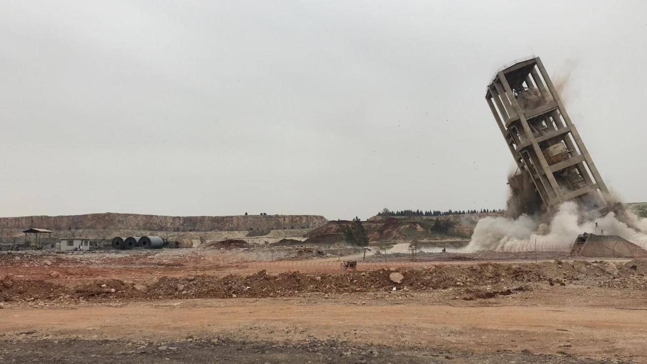 Güler'in kentteki 65 metre yüksekliğindeki siloyu patlayıcıları infilak ettirerek yaklaşık 10 saniyede enkaza dönüştürme anı, kameralarca saniye saniye kayıt altına alındı.