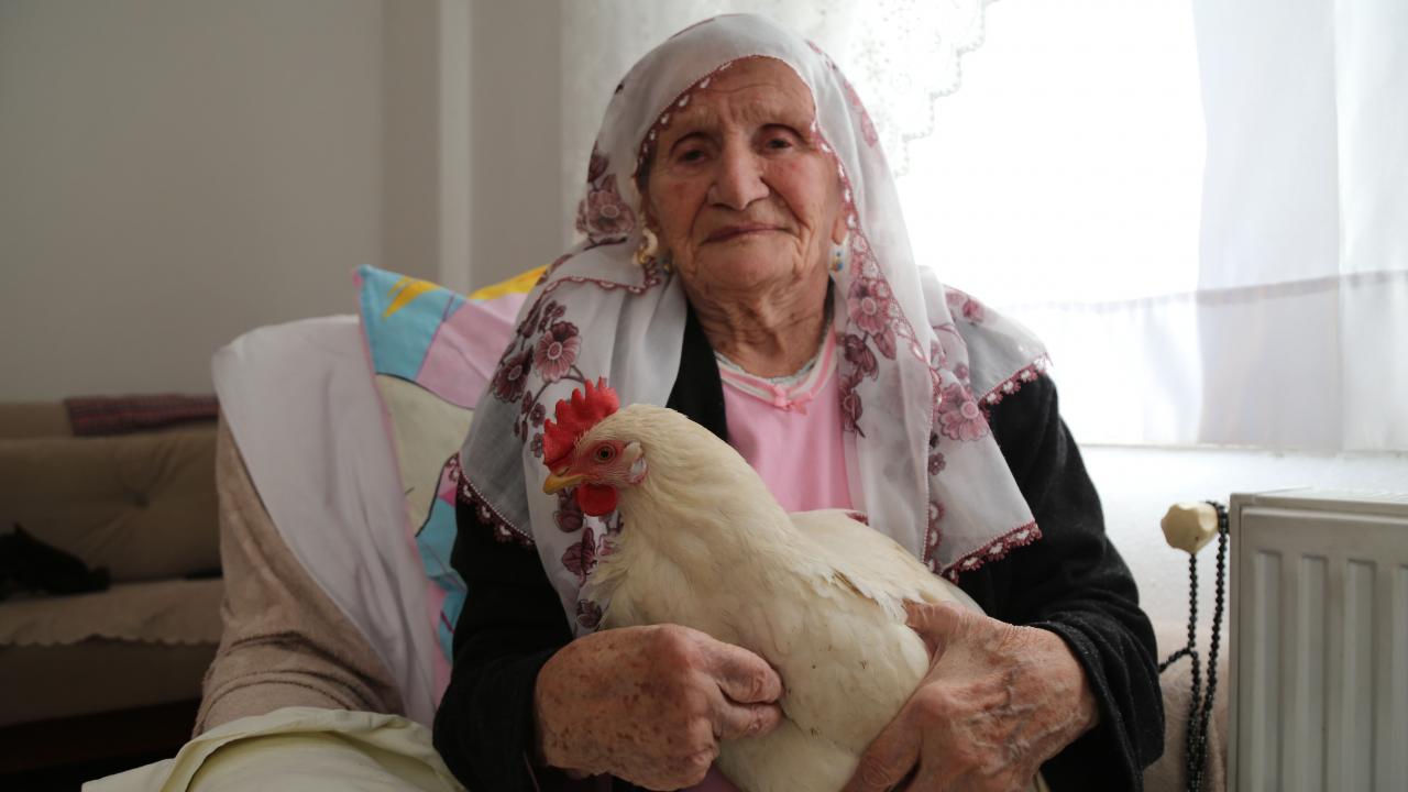 Yıllardır baktığı tavuklarını özleyen 96 yaşındaki Hatice Toraman, hayvanları görünce mutlu oluyor. Tavukları eve geldiğinde kucağına alıyor, seviyor, onlarla konuşmaya çalışıyor. Tavuklar ise Hatice Toraman'ı hatırlayarak kucağından inmiyor.