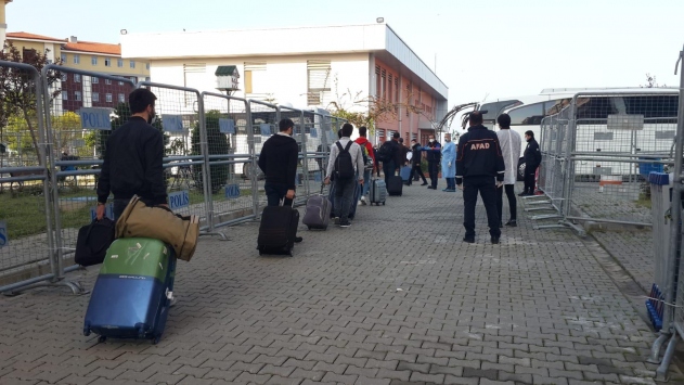 Kaldıkları yurttan alınan 157 kişi, işlemlerinin ardından otobüslerle 45 farklı şehre uğurlandı.