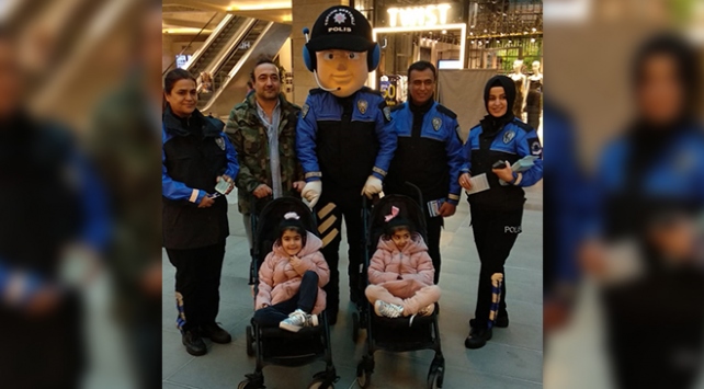 Maskot polisin de yer aldığı ekip, vatandaşlarla yüz yüze görüşüp alışveriş sırasında değerli eşyalarını yanlarından ayırmamaları konusunda uyardı.