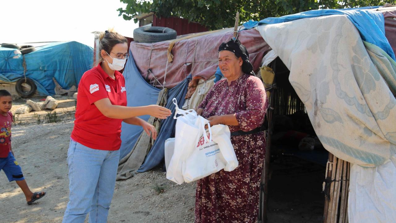 Belediyeden yapılan yazılı açıklamada, Karataş ilçesinde bulunan Çimeli, Yüzbaşı, Sirkenli, Çağırkanlı ve Kadıköy mahallelerinde çadırda yaşayan mevsimlik tarım işçilerini ziyaret eden Derman ekiplerinin, işçilerin ailelerine kıyafet, gıda, mutfak malzemesi ve hijyenik ürün yardımında bulunulduğu belirtildi.
