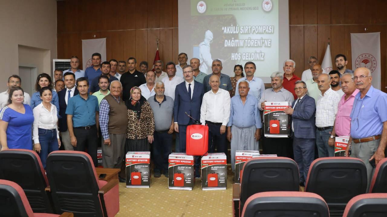 Konuşmaların ardından üreticilere akülü sırt pompaları dağıtıldı.