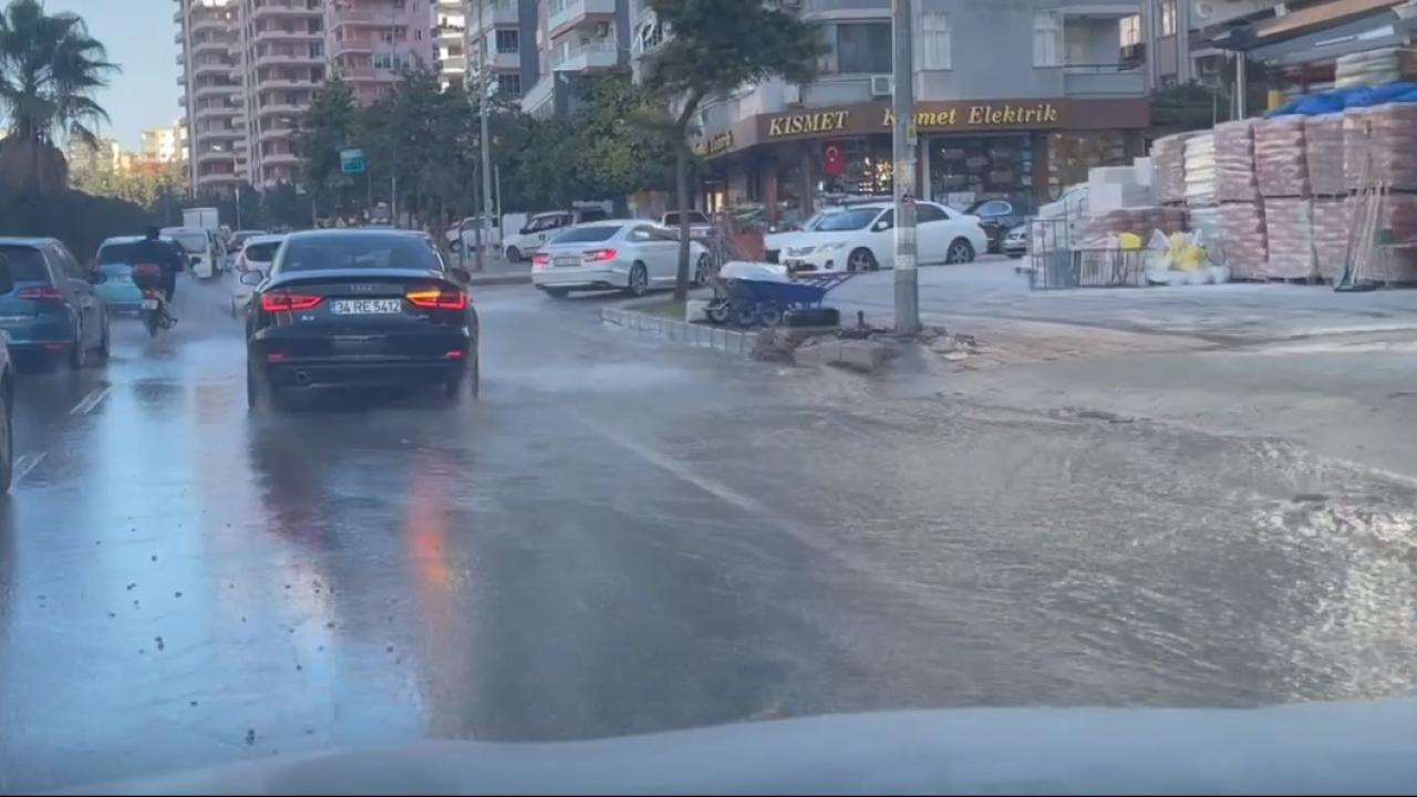 Patlayan borudan çıkan suyun bulvar boyunca akması nedeniyle sürücüler ve yayalar güçlükle ilerledi.