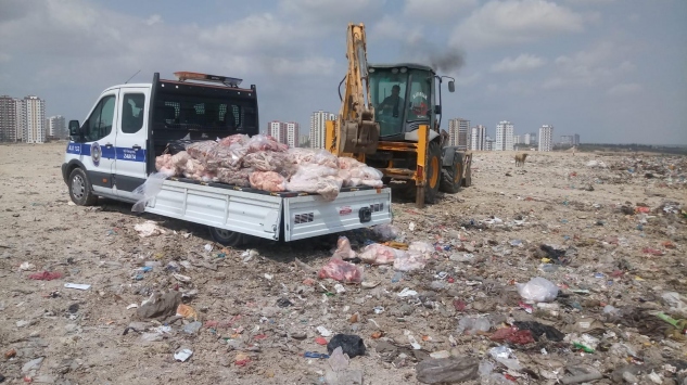 Ekipler iş yerinde yaptığı denetimde, 330 kilogram bozulmuş et, sakatat ve iç yağı buldu.