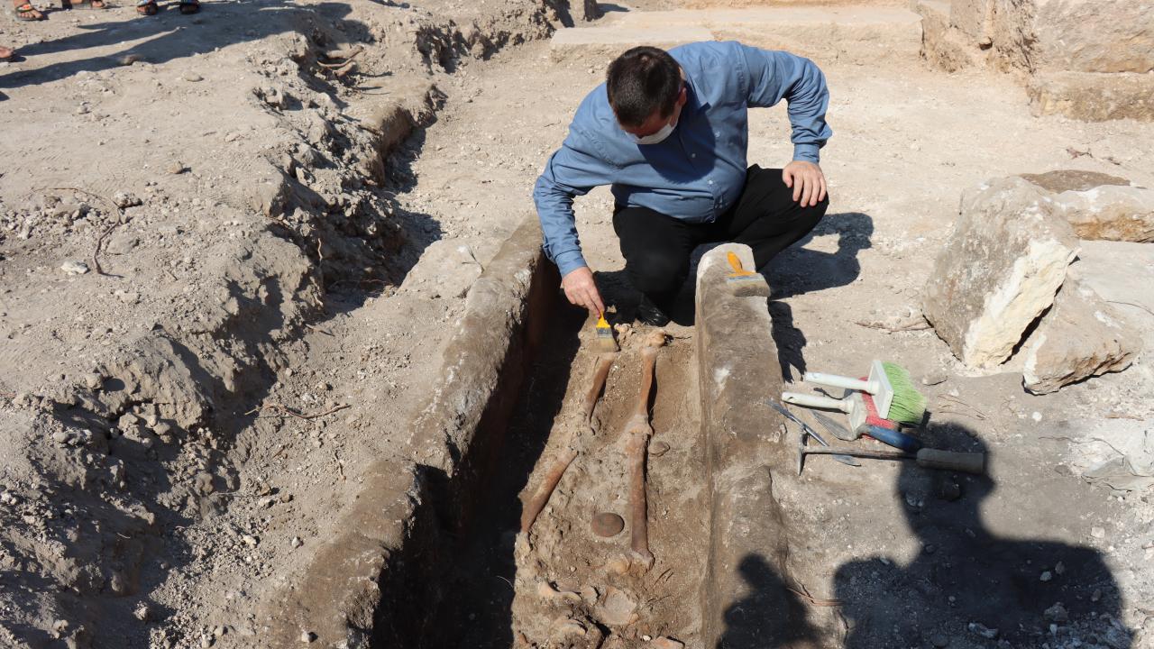 Roma Çeşmesi'nin kuzey ve batısında kazı çalışmaları yaptıklarını anlatan Alkan, "Bir yerleşik alanda böyle mezar yapısına denk gelmemiz ilginç. Bu mezar yapısında iskelet ortaya çıktı. Bu İskelet yapısı sırt üzeri yatmış bir şekilde doğu-batı uzantısında uzanmıştır. İçerisinde ise bir ölü hediyesi olarak çömlek bulduk. Bu çömlekten yola çıkarak bu mezar yapısının Bizans dönemi yani bin yıllık bir mezar olduğunu görmekteyiz." dedi