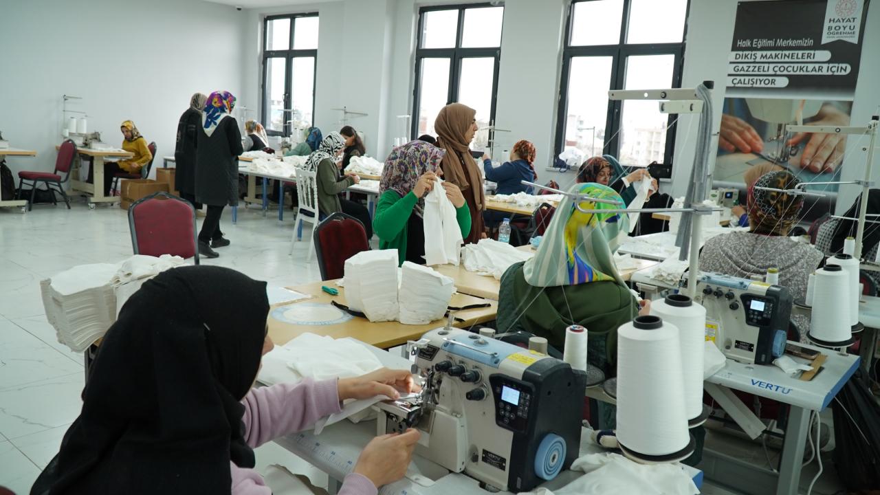 Merkezdeki 50 usta öğretici kadın, Gazzeli bebekler için 10 bin yeni doğan takımı üreterek bölgeye gönderecek.