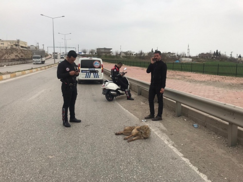 Altınşehir Mahallesi Karaali Köprüsü'nde bir otomobilin çarpması sonucu yaralanan tilkiyi gören İl Emniyet Müdürlüğü Asayiş Şube Müdürlüğüne bağlı Yunus ekipleri, yolda güvenlik önlemi aldı.