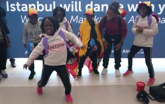 Sosyal medyadaki dans videoları milyonlarca kişi tarafından izlenen "Masaka Kids Africana" grubunun üyeleri, havalimanına giriş yaptıklarında "İstanbul will dance with you, Welcome Masaka Kids Africana" yazan bir pankart ile karşılandı.