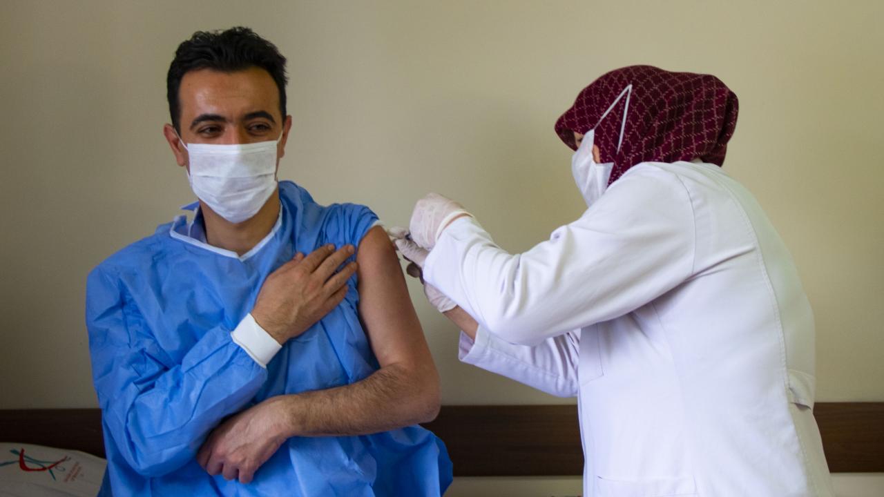 Türkiye İlaç ve Tıbbi Cihaz Kurumunca analizleri tamamlandıktan sonra "Acil Kullanım Onayı" verilen CoronaVac aşısının ilk dozu, Ağrı Eğitim ve Araştırma Hastanesinde oluşturulan bölümlerde, randevu sistemine göre kentte görev yapan sağlık personeline uygulanıyor.