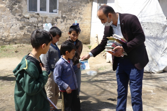 TÜGVA Taşlıçay İlçe Temsilcisi Emrullah Kaya, koronavirüs salgını nedeniyle herkesin zorlu bir süreçten geçtiğini ve köylerdeki öğrencilere moral vermek amacıyla kitap yardımı yaptıklarını söyledi.