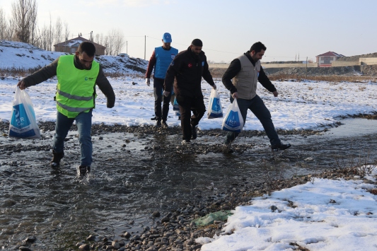 Kışın çetin geçtiği Ağrı'da, Beşir Derneği gönüllüleri, yem bulmakta güçlük çeken kuşlar ve yaban hayvanları için dağ bayır dolaşarak doğaya yem bırakıyor.