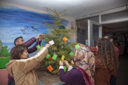 Bu kapsamda öğrenciler, yaptıkları ve kendilerine yapılan iyilikleri küçük not kağıtlarına yazarak okulun girişinde oluşturulan iyilik ağacının dallarına asıyor.