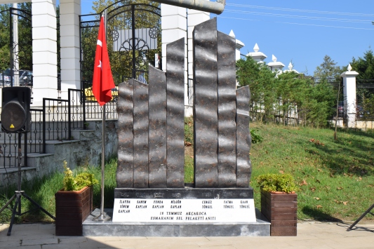 Akçakoca Belediyesi tarafından sel felaketinde hayatını kaybedenlerin unutulmaması için 15 Temmuz Demokrasi Şehitleri Parkı'na yaptırılan anıtın açılış töreni, saygı duruşunda bulunulması ve İstiklal Marşı'nın okunmasıyla başladı.